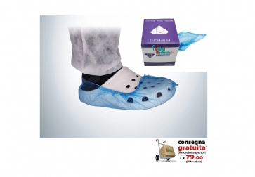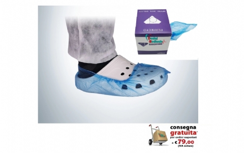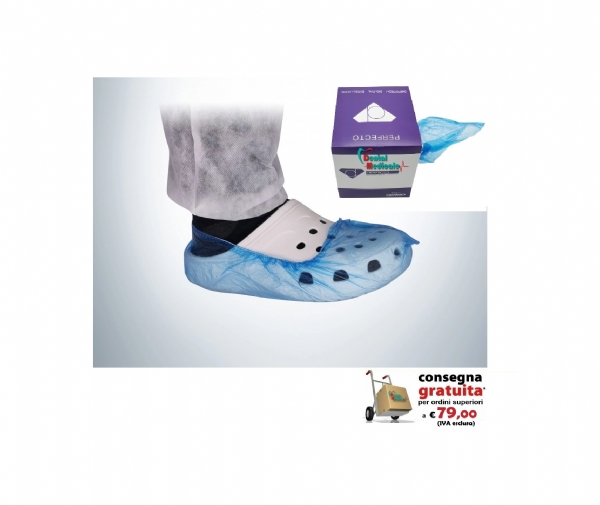I sovrascarpe monouso PERFECTO Shoe Covers, realizzati in PE e TNT, disponibili in taglia unica, con elastico di chiusura alla caviglia. Caratterizzati da spessore ridotto, leggerezza e impermeabilità, sono ideali per pazienti e operatori.
