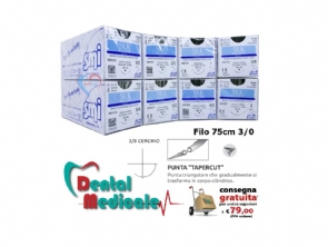 Suture chirurgiche in seta nera 75cm SMI SILK 3/0 ago TAPERCUT 3/8 c. - 12pz